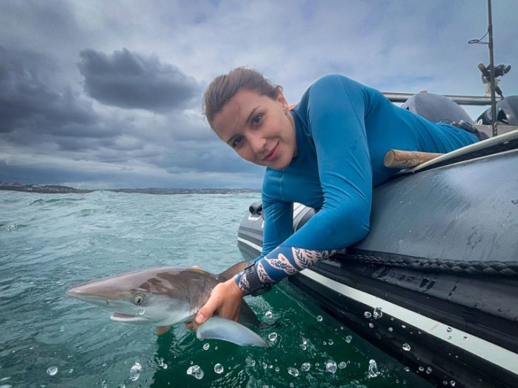 Wildtierärztin Hannah Emde entlässt einen jungen Dunkelhai wieder in die Freiheit. Zuvor wurde er mit einem Sender ausgestattet. Die fischreiche Küste vor der südafrikanischen Metropole Durban ist die "Kinderstube" der Haie, denn hier findet der Nachwuchs immer genug zu fressen.