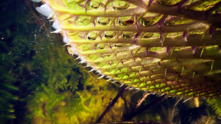 Unter den Wasserpflanzen ist die Riesenseerose aus dem Amazonasgebiet eine Besonderheit. Ihre Blätter können einen Durchmesser von mehr als zwei Metern erreichen - doch auch sie fängt klein an. Zunächst strebt eine dornenbewährte Knospe durchs Wasser - der Sonne entgegen Richtung Oberfläche. Dort drückt sie durch kreisende Bewegungen andere Pflanzen zur Seite. Schließlich entfaltet sich das Blatt, spießt andere Pflanzen auf oder überrollt sie und nimmt ihnen das Licht. Am Ende ist die gesamte Wasseroberfläche von Blättern der Riesenseerose bedeckt.