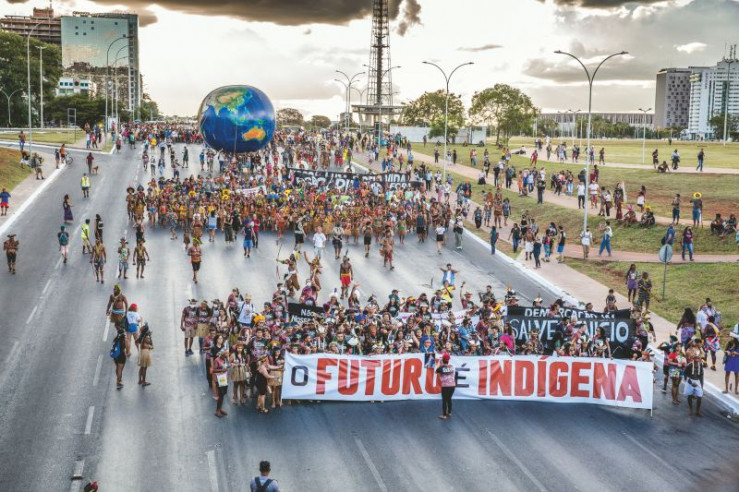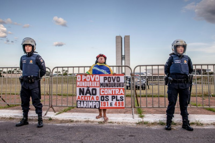 Die Polizeipräsenz in der Hauptstadt ist während der Demonstration der Indigenen gewaltig. Im Regenwald jedoch wird kaum ermittelt. Alessandra Korap hat schon zahlreiche Morddrohungen erhalten.