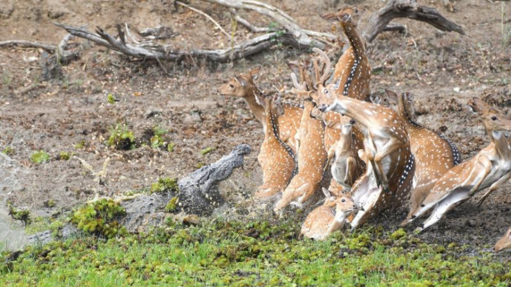 In Sri Lanka beispielsweise müssen Sumpfkrokodile während der Trockenzeit zu alternativen Jagdstrategien greifen. Solange es irgendwie geht, halten die Reptilien an ihrem gewohnten Verhalten fest: Sie lauern in den Wasserlöchern auf ihre Beute. Ein Axishirsch kann einen der Jäger für bis zu vier Monate satt machen.