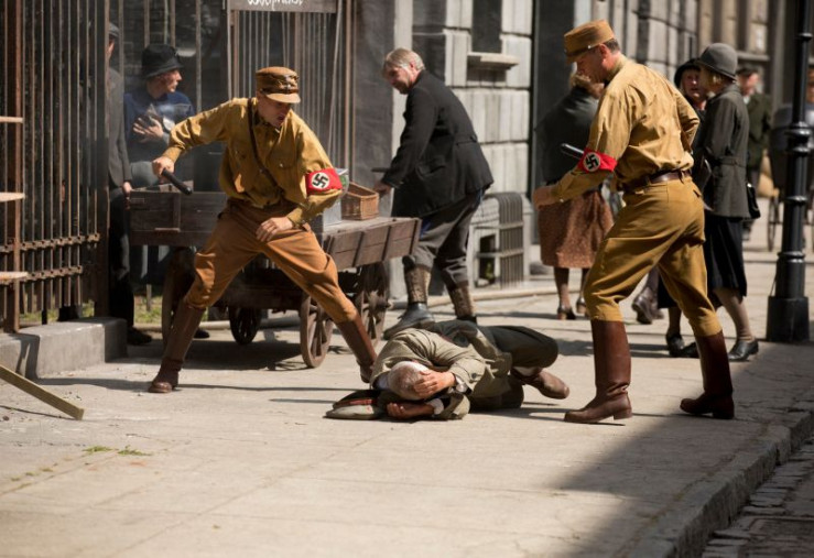 Mit Zivilcourage versuchen Albert (Jan Josef Liefers, links) und Henny (Anna Loos, 4.v. links) einen von der SA drangsalierten Passanten zu beschützen.