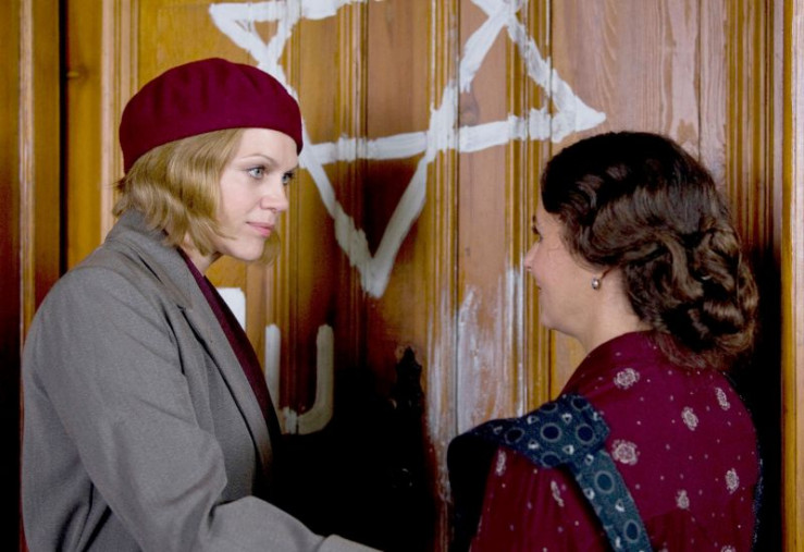 Henny (Anna Loos) spricht mit Ruth Fraenkel (Naomi Krauss), deren Tür beschmiert wurde.