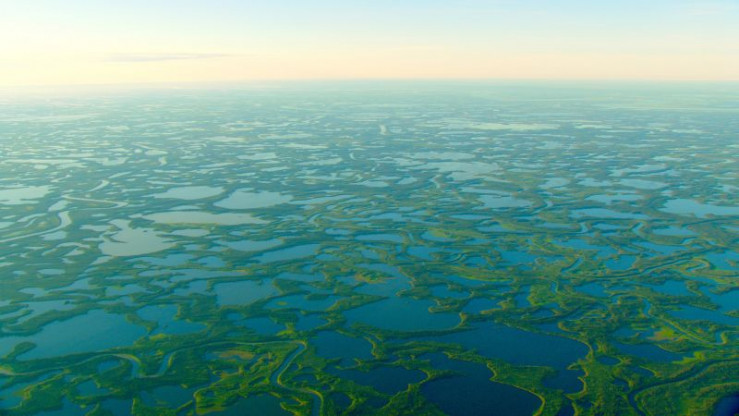 Blick über das Delta des Mackenzie-Storms im Northwest-Territory im arktischen Kanada.