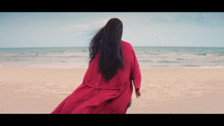 Ruja Ignatova (Nilam Farooq) ist auf einer einsamen Insel und läuft Richtung Wasser.