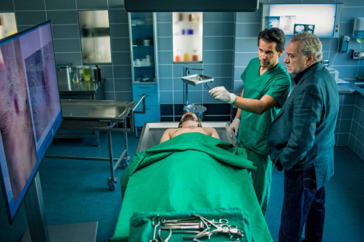 Arthur Bauer (Gerd Silberbauer, r.) lässt sich von Dr. Weissenböck (Florian Odendahl. M.) auf den neuesten Stand der Untersuchungen bringen.