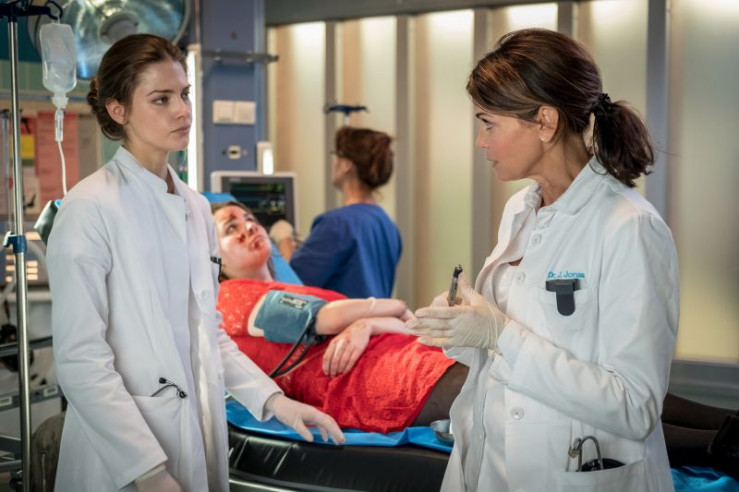 Dr. Jasmin Jonas (Gerit Kling, r.) ist sauer, dass Dr. Eva Grünberg (Laura Berlin, l.) sich nicht an ihre Anweisungen gehalten hat.