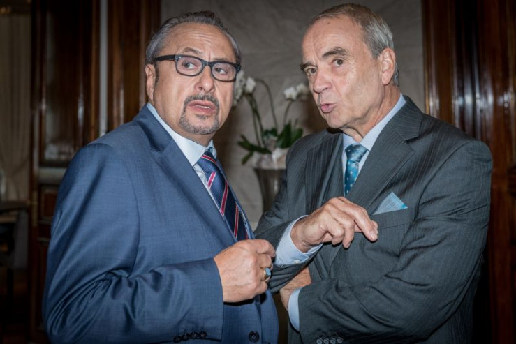 Wilhelm Löhring (Wolfgang Stumph, l.) kann seinen alten Golfpartner Heinrich von Lohsewitz (Walter Kreye, r.) davon überzeugen, Geld für die Übernahme bereit zu stellen.
