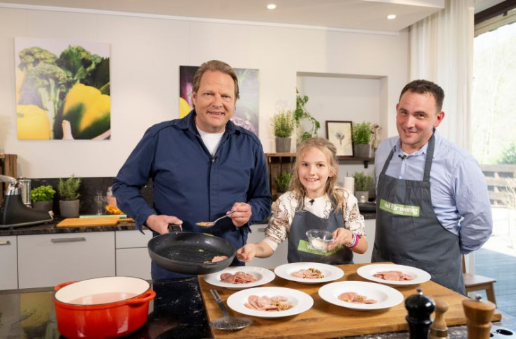 Björn Freitag (l.) kocht leckere, schnelle Gerichte mit Selina und Oliver Mühlschlegel.