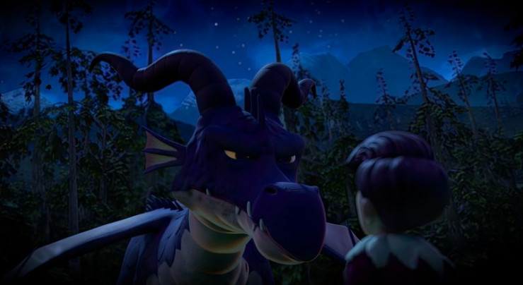 In einem Albtraum malt sich Prinz Tipsar (rechts) die schlimmsten Szenarien beim geplanten Zusammentreffen mit Drache Brandarium (links) aus. Er hat Angst, von dem Feuer des Drachen verbrannt zu werden.