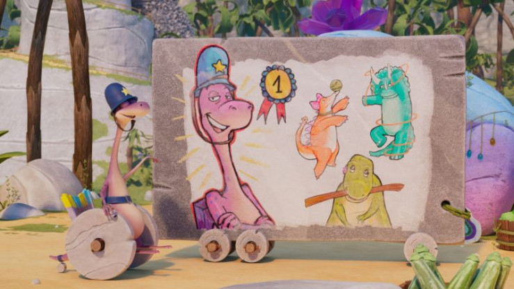 Dieser bunten Gruppe von Haustiersauriern und der wilden Lucy will Wachtmeister Paleowsky Manieren antrainieren.
