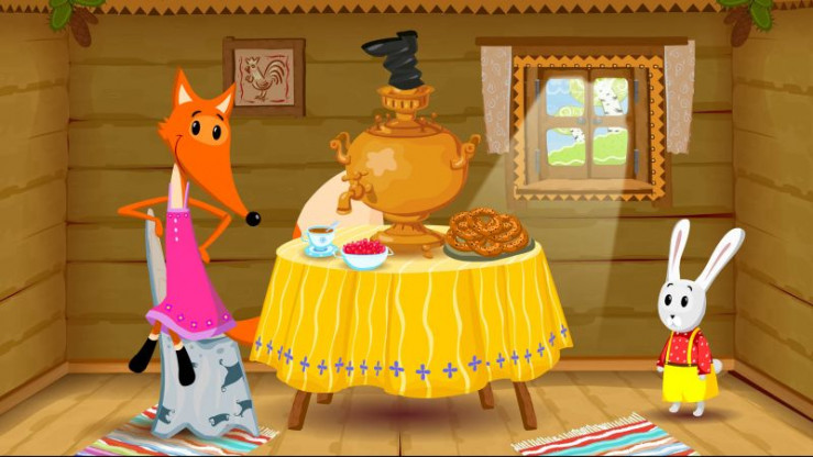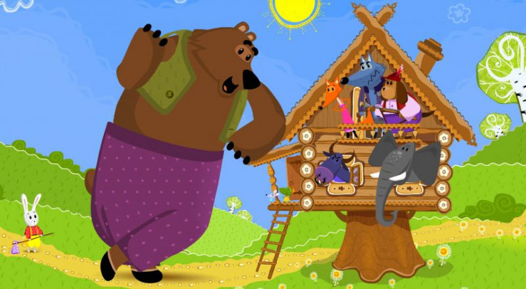 Der Fuchs wohnt in einer Eishütte, der Hase in einer aus Holz. Als der Frühling kommt, schmilzt die Hütte des Fuchses und er beschließt beim Hasen einzuziehen. Der Hase bittet den Hund und den Wolf um Hilfe, doch der Fuchs bietet beiden an, in die Hütte einzuziehen. Nun fragt der Hase den Bären um Hilfe. Doch der haut die Hütte wütend in tausend keine Stücke, als die anderen ihm keinen Platz darin anbieten.