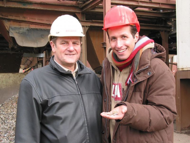 Willi (rechts) und Wolfgang Ihle. Diesmal möchte Willi wissen, was mit den Schrottautos passiert und wie man Metallteile wieder verwerten kann.