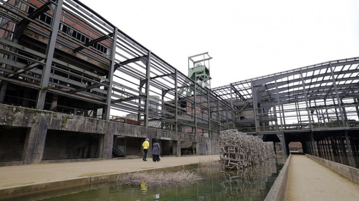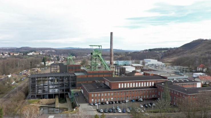 Auch Jürgen Smirra und Thomas Köhl sind ehemalige Bergleute. Sie führen die Moderatorin durch die verlassenen Werkshallen der stillgelegten Grube Göttelborn.