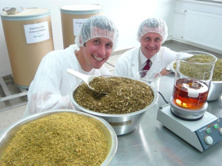 Weiter geht's zur Firma Bionorica in Neumarkt in der Oberpfalz. Bevor Willi einen Blick in die Produktion von Erkältungssaft wirft, muss er erst mal bei der Ernte mit anpacken und Unkraut aus dem Ampferkraut-Feld jäten. Im Saft sollen neben dem Ampferkraut schließlich nur die 4 weiteren Zutaten sein: Holunderblüte, Schlüsselblume, Eisenkraut und Enzianwurzel. Joachim Erler erklärt Willi, dass alle Kräuter mit gereinigtem Wasser vermengt werden und dann mehrere Tage lang ziehen müssen. Funktioniert ja wie beim Tee! Jetzt noch Sirup und Kirschsaft für den Geschmack hinzu - und fertig ist der Erkältungssaft. Na dann, gute Besserung!
