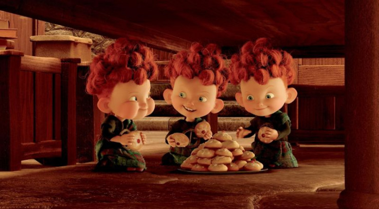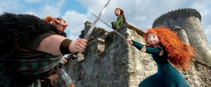 Merida (2.v.l.) ist wie ihre Brüder Harris, Hubert und Hamish eindeutig vom Schlage ihres hitzköpfigen aber beherzten Vaters Fergus. Ihre Mutter Elinor hingegen ist diszipliniert und auf Etikette bedacht.