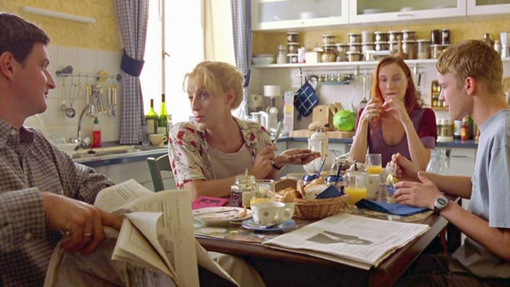 Flo (Tobias Schenke, re.) mit seinen Eltern (Sissi Perlinger, 2.v.li.; Stefan Jürgens, li.) und seiner Tante Zelda (Andrea Sawatzki, 2.v.re.)