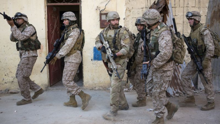 US Navy Seal Chris Kyle (Bradley Cooper, 3.v.l.) wird mit nur einer Aufgabe nach Irak gesendet: seine Kameraden zu beschützen. Mit seiner unfehlbaren Genauigkeit rettet er unzählige Leben auf dem Schlachtfeld.