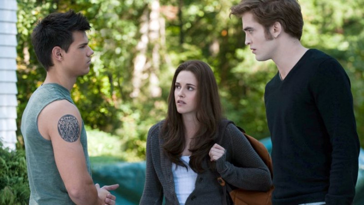 Jacob (Taylor Lautner, li.) mit Bella (Kristen Stewart) und Edward (Robert Pattinson, re.)