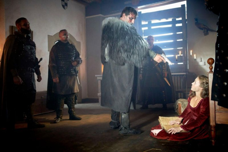 Während Semir und Paul undercover auf einem mittelalterlichen Fantasy-Rollenspiel ermitteln, finden Dana (Gizem Emre) und Finn (Lion Wasczyk, Mi.) in einer zwielichtigen Kneipe heraus, dass auch ein gesuchter Polizisten-Mörder bei dem Event auf einer nahegelegenen Burg teilnimmt. r.: Gast (Markus Halbe)