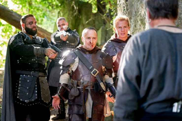Auf einem Fantasy-Rollenspiel-Event sind Semir alias 'Semiron' (Erdogan Atalay, 2.v.l.) und Paul alias 'Paulus' (Daniel Roesner, 4.v.l.) während ihrer Undercover-Ermittlungen auf eine Gruppe echter Gangster gestoßen. Ihr Anführer, Arthur von Radeck (Andreas Hoppe, 2.v.r.) sowie seine Kupane Winkler (Florian Schmidtke), Leon (Chris Kemper, l.) und Dennis (Jakub Muja, r.) halten die Autobahnpolizisten in Schach, um ungestört ihr Tat zu vollenden.