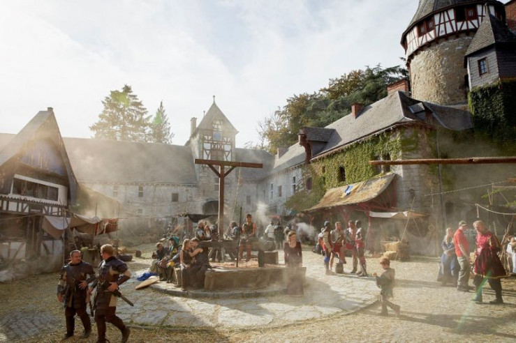 Semir alias 'Semiron' (Erdogan Atalay, l.) und Paul alias 'Paulus' (Daniel Roesner, 2.v.l.) in der Fantasy-Rollenspiel-Welt von Engonia.