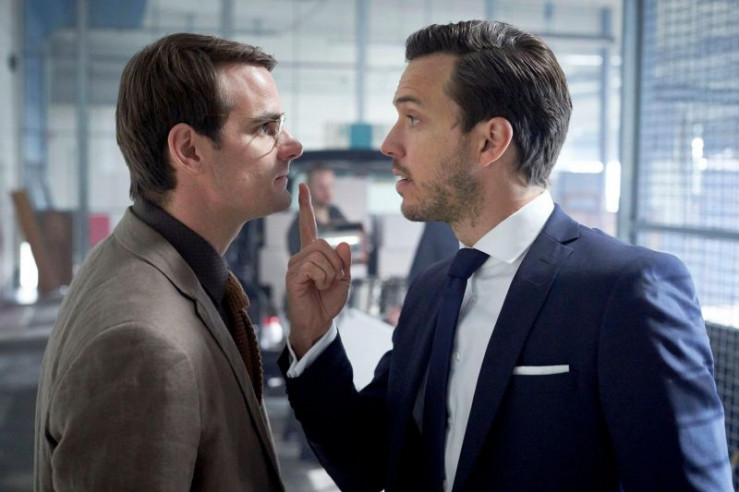 Der Wissenschaftler Dr. Janik Sydow (Marian Kindermann, l.) und sein Halbbruder Klemens Kronbach (Tobias van Dieken) sind über die Vermarktung eines von Sydow erfundenen Medikaments uneins.
