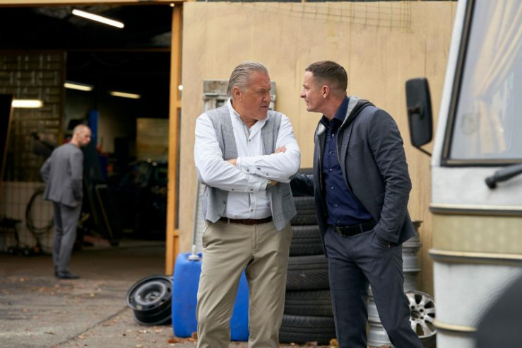 Pauls Vater Klaus Renner (Michael Brandner, Mi.) hat Besuch von Kronbachs Männern. Lenny Theiss (Chris Köberlein, r.) und Zobel (Carl Stück) geben vor bei Renner ein Wohnmobil kaufen zu wollen...
