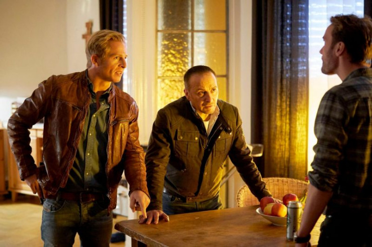 Der Unfallsanitäter Moritz (Max Woelky, r.) wird von Semir (Erdogan Atalay) und Paul (Daniel Roesner, l.) zur Rede gestellt.