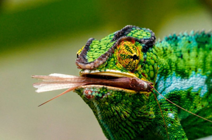 Ihre flinke, klebrige Zunge und ihr peripheres Sehsystem machen das Chamäleon zu einem geschickten Jäger.