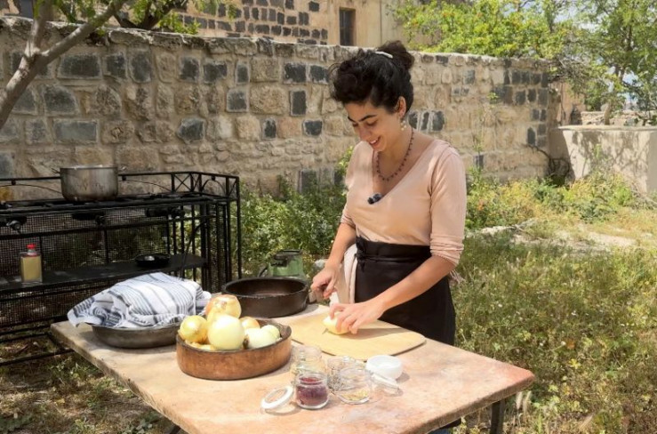 Musakhan ist ein Klassiker der palästinensisch-jordanischen Küche: Hähnchenfleisch, Gewürze und reichlich Zwiebeln werden auf einem fluffigen Fladenbrot serviert.