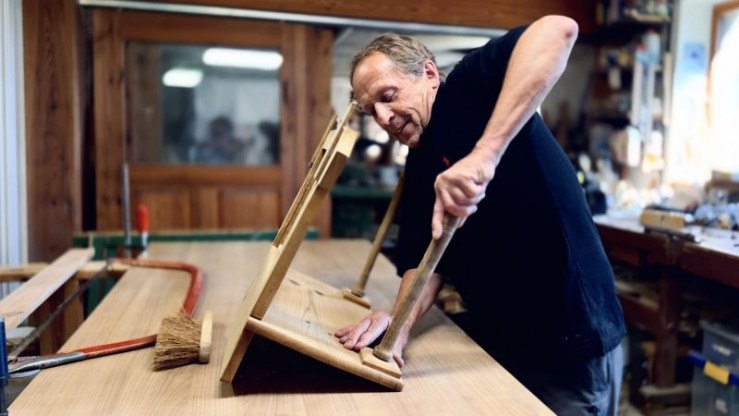 Rudi Pöltl beim restaurieren alter Möbel.