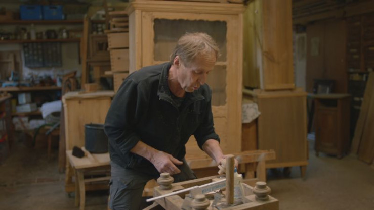 Der Schreiner Rudi Pöltl in Breitenau in der Nähe von Bad Windsheim liebt es, alte Holzmöbel zu erhalten. Nachtkästchen, Barockschrank, Buffet - seine Werkstatt ist randvoll mit speziellen Werkzeugen, Geräten und Lacken, die es zum Restaurieren solcher Schätze braucht. Je älter die Stücke, desto lieber ist es ihm. Seine Arbeit macht er aus der Überzeugung, dass wir alle weniger wegwerfen sollten. So baut er auch nichts Neues, sondern hat sich rein aufs Restaurieren spezialisiert. Bis unters Dach ist sein Möbellager gefüllt: Mit Möbelstücken, die geduldig auf ihre Wiederverwendung warten.