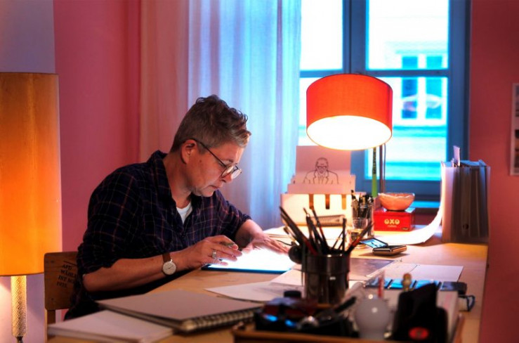 Linda Benedikt, Enkelin von Robert Lembke, beim Zeichnen.
