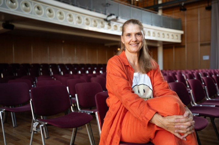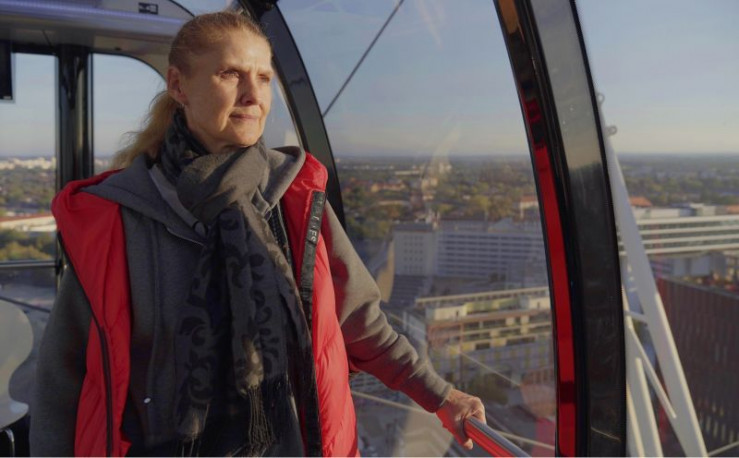 Corinna Binzer beim Dreh für die Lebenslinien auf dem Wiesenrad im Werksviertel.