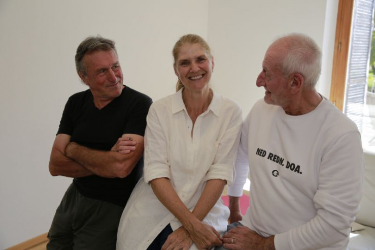 Corinna Binzer mit Mann Sepp Schauer (rechts) und Schauspielkollegen Hans Schuler (links) beim Dreh für die Lebenslinien.