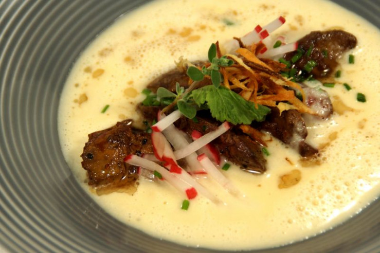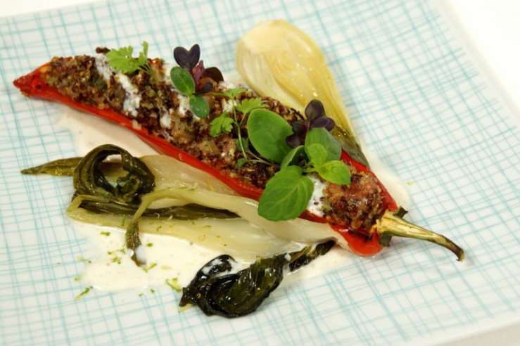 Asien trifft Bayern mit einem echten Klassiker: gefüllte Paprika, aber auf einem thailändischen Hendlsalat. Bei der Nachspeise hat Bachmeier nicht lange suchen müssen, da hat die Erinnerung an die Oma nachgeholfen, die noch selbst gebuttert hat. Seine Buttermilchmousse serviert Bachmeier mit Amaranth und Papaya.