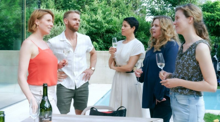 Ein neues Leben: Miriam Hintz (Franziska Weisz, li.) mit Arvid (Mads Hjulmand, re.) und ihren Kindern (hinten, v. li. n. re.) Madeleine (Chiara Bauer), Moritz (Constantin Bauer) und Matthias (Lennard Winkler).