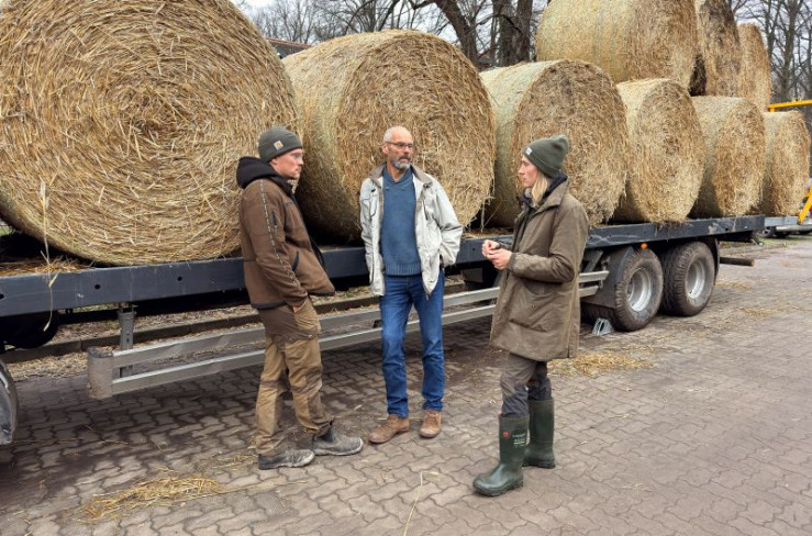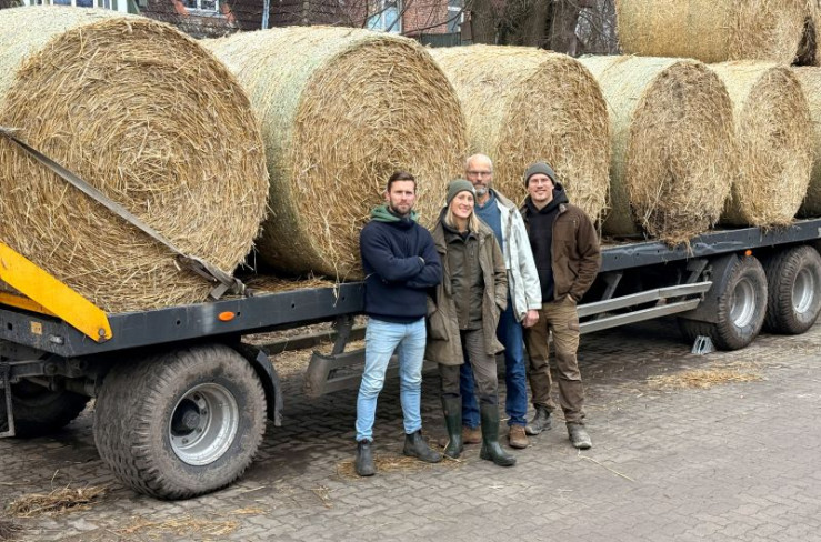 Vater Georg Lutz (2. von re.) übergibt die Leitung von Gut Wulfsdorf an seine Kinder Simon (r.) und Helene Lutz (2. von li.) sowie an deren Freund Wichard Pauls (li).