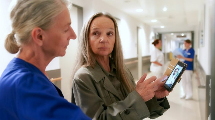 Inès (Jasmin Gerat) muss sich die ganze Geschichte ihres Sohnes Olivier anhören.