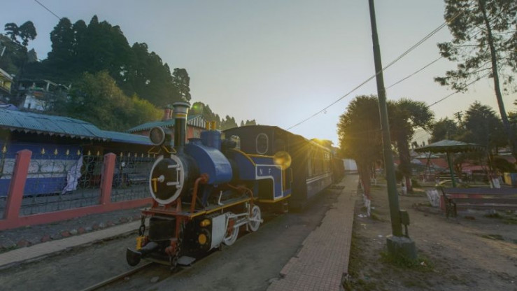 Mithilfe von Schleifen und doppelten Spitzkehren können die beiden Züge der Schmalspurbahn den Anstieg bewältigen. Passagiere haben dabei seit einigen Jahren dank eines Panoramadachs eine beeindruckende Aussicht auf die für ihren Tee bekannte Landschaft in Westbengalen.