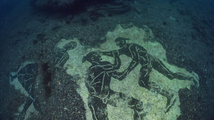 Nur wenige Meter entfernt, versunken im Meer, liegt die antike Stadt Baia. Schon vor 2000 Jahren waren die heißen Quellen der Region bei reichen Römern beliebt. Feldherren wie Gaius Julius Caesar, Kaiser Augustus und Caligula hatten dort ihre Sommerresidenz.