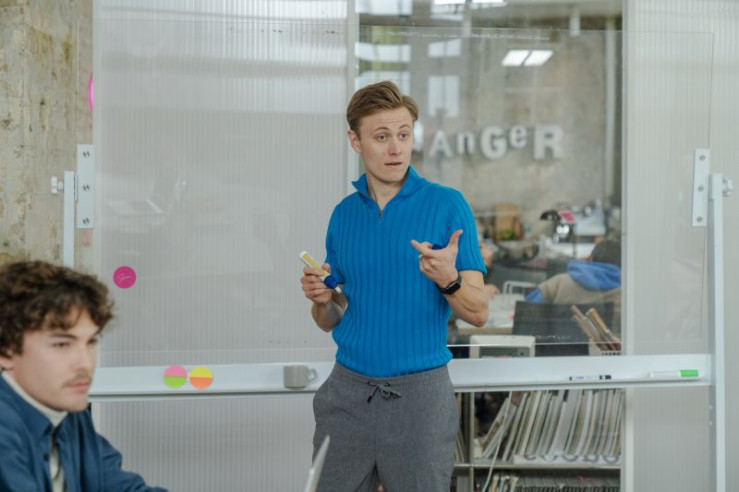 Bei der Redaktionskonferenz müssen Hanna (Banafshe Hourmazdi, l.) und Felix (Justus Riesner, r.) sich beweisen. Ob sie sich gegen ihren Boss behaupten können?