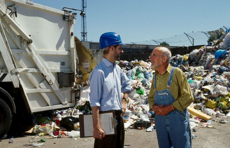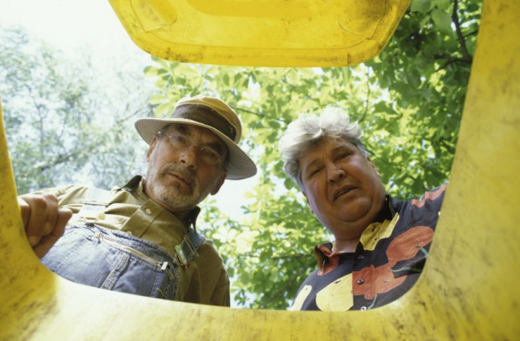Zwischen Bärstadts riesigen Müllbergen ist Peter Lustig (Peter Lustig, r.) auf der Suche nach einem wertvollen Gartenzwerg. So eine Frage hatte der Betriebsleiter (Frank Arnold, l.) noch nie.