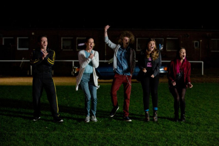 Frank (Marc Ben Puch, l.) erfährt vom tödlichen Unfall von Saschas (Laura Berlin, r.) Eltern.