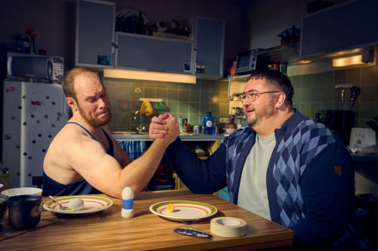 Sven (Sven Daniel Bühler, l.) fordert Tüffi (Daniel Zillmann, r.) zum Armdrücken heraus.