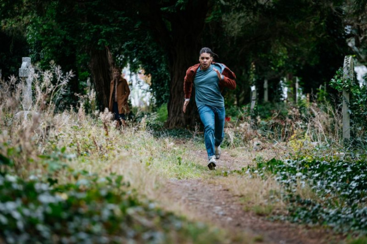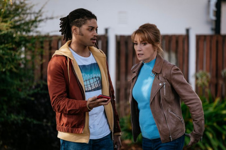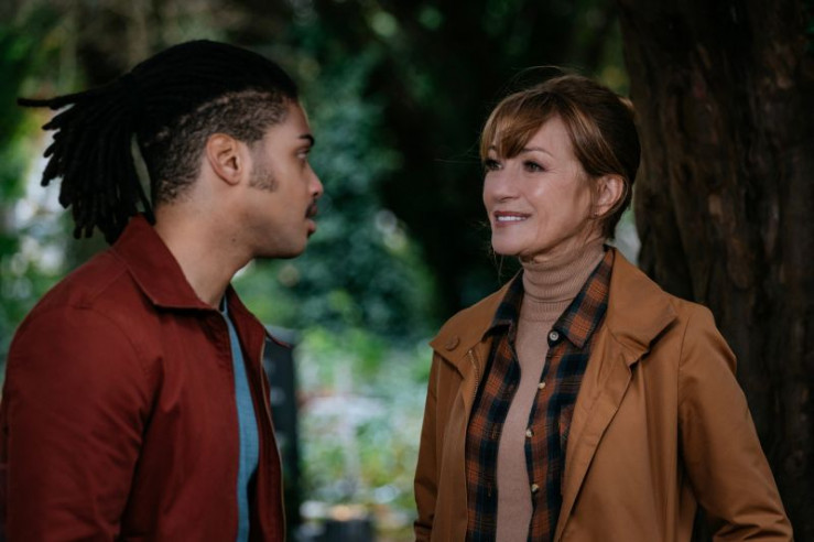 Simon (Patrick O'Donnell, M.) reagiert abweisend, als Fergus (Rohan Nedd, l.) und Harry (Jane Seymour) ihn zu dem Mann befragen, der während seines literarischen Spaziergangs ermordet wurde.