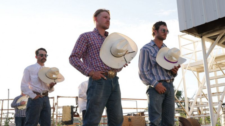 In Arthur County im Westen Nebraskas legen die Rodeoreiter vor dem Wettkampf ihre Hüte zum Gebet ab.