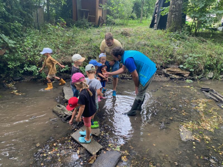Damit der Dorfbach nicht weiter austrocknet, hat der Kindergarten in Holzheim im Landkreis Neu-Ulm die "Bachpatenschaft" übernommen: Sie bauen eine Hecke aus Altholz für Tiere im Uferbereich. Weidenstecklinge direkt an der Uferböschung sollen bald Schatten spenden, den Bach kurvenreicher machen und ihm wieder zu mehr Leben verhelfen. Unterstützung bekommt die Gruppe vom Bauhof der Gemeinde und vom Landratsamt, dessen Umweltexperten den Kindern die Zusammenhänge rund um den Bach näherbringen.
