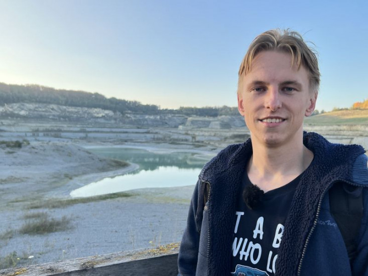 Ein Steinbruch voller Fossilien und ein glücklicher Entdecker: Der Niederländer Lars Barten entdeckte hier einen versteinerten Mosasaurus.