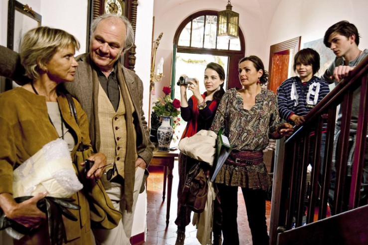 Katharina (Uschi Glas, li.) weiß nicht recht, ob sie und Peter (Michael König, 2.v.li.) wirklich bei Peters Tochter Verena (Katja Keller, 3.v.re.) und deren Kindern Saskia (Leslie-Vanessa Lill), Florian (Benedikt Hösl, re.) und Benni (Jannik Brengel, 2.v.r.) einziehen sollen.